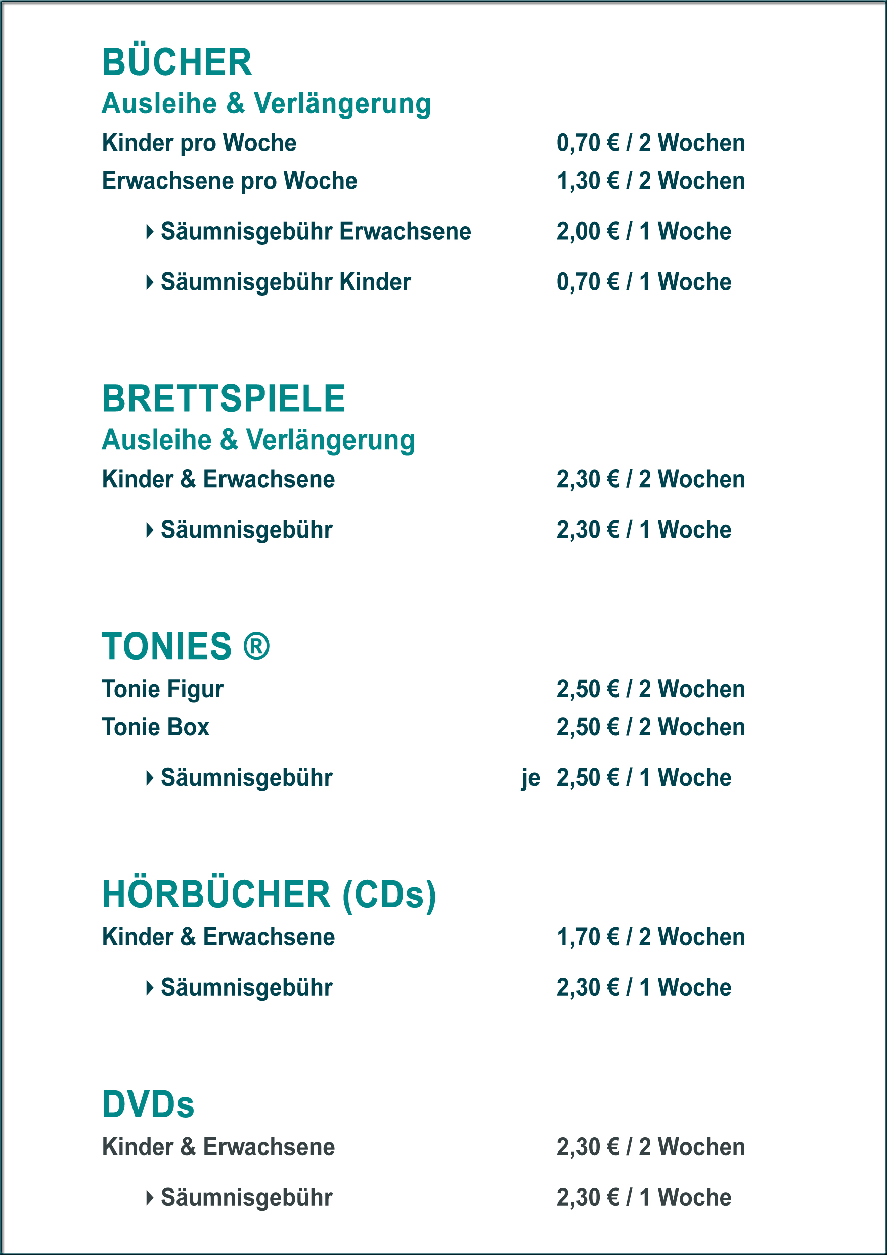 VERLEIHGEBÜHREN ohne Jahreskarte
